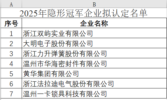 關(guān)于2025年度浙江省隱形冠軍企業(yè)認(rèn)定和復(fù)核通過名單的公示